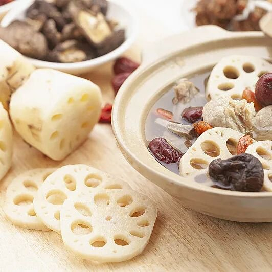 做法:先将排骨焯水去血沫,和玉竹、姜片一起煮20分钟,再放入莲藕、红枣炖上30分钟,撒入适量盐调味,直至莲藕粉糯。