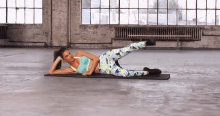 侧卧高抬腿:侧卧在瑜伽垫上,双腿自然弯曲,抬高一条腿到极限为止,再恢复到初始位置,每条腿重复5-10次。