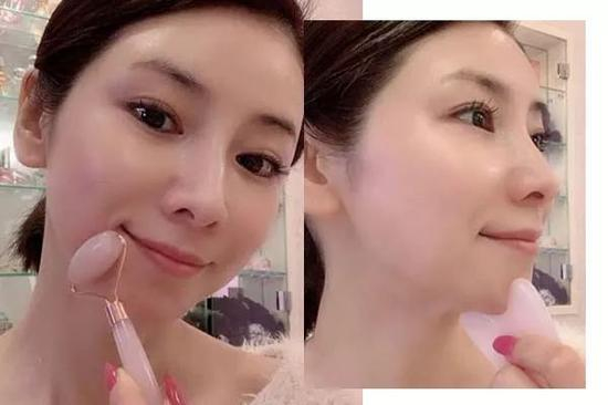 水谷雅子其实是以面部刮痧的方式来紧致肌肤的,用到的是有弧度的刮痧板,可以贴合咱们脸部的轮廓,其实和按摩是异曲同工的效果,大家用自己手头里有的产品即可。不过一定要搭配按摩油,才不会拉扯到皮肤哦~