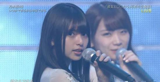 来品品这张表演时的名场面抓拍合照,斋藤飞鸟站在前面,根据近大远小的原则理应她脸更大,后面那位女生的脸居然还是比她大了两圈,现在知道脸小的人有多合照杀手了吧?
