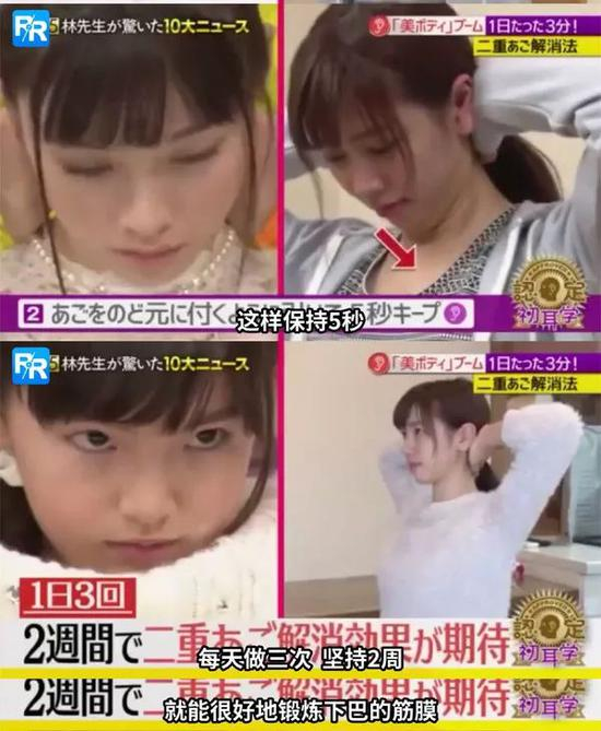 这套动作每天做3次,坚持2周,据说就能很好地消除双下巴~