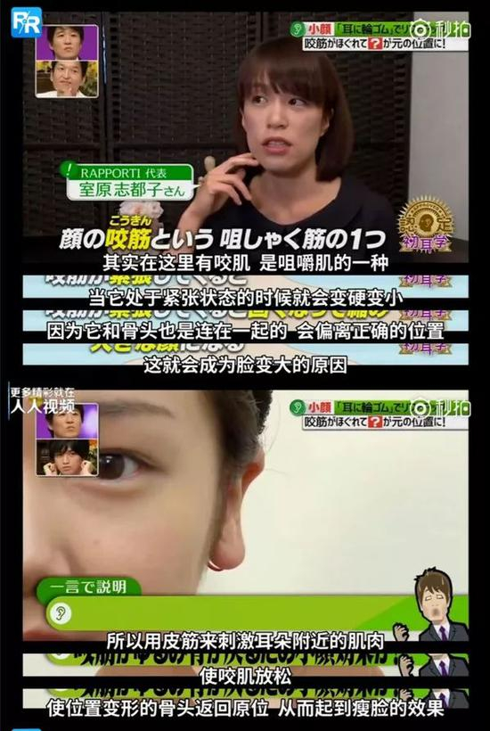原理也很简单,利用皮筋刺激耳朵附近的肌肉,使得咬肌放松,让位置变形的骨头返回原位,自然就在视觉上显脸小了。