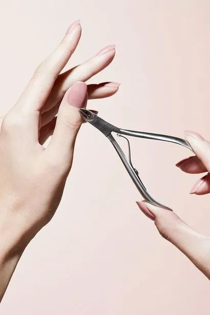 推出的死皮用死皮剪轻轻剪掉,这一步也要小心,不要伤到甲床,另外也可以把手指倒刺剪干净。