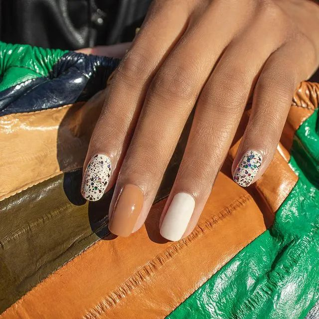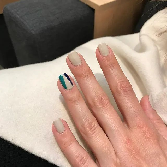 Alicia很会玩色彩,喜欢用饱和度低的颜色,做成撞色也不会有任何突兀,高级感不言而喻,这种极简风格,更是百搭又好看,带着你喜欢的图样找美甲师复刻也绝对不会出错~