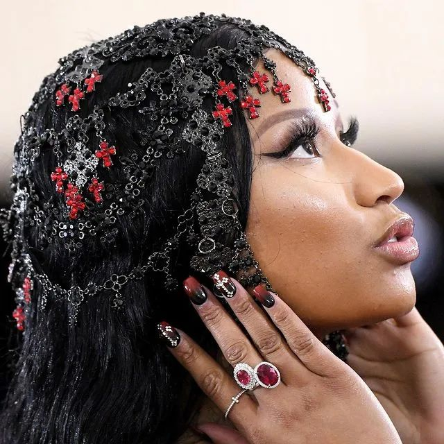 Nicki Minaj的美甲与整套造型相得益彰,颜色碰撞可谓运用到了极致,虽然这种略夸张又有一点暗黑的美甲风格O姐还没尝试过,但一直在清单里收藏着,等着合适的机会尝试下。