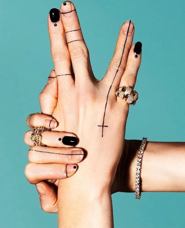 Alicia Torello可以说是整个欧美美甲圈儿的流行风向标,几何、留白、线条、撞色这些元素在她手下被玩出了灵气,Alicia Torello差不多代表着欧美美甲师极佳的品味了。