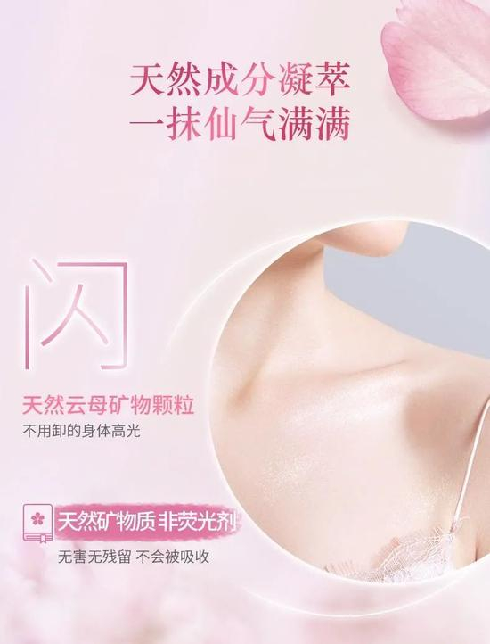 这款身体乳最特别的就是含云母粉,涂上之后身体上会有blingbling的细闪,但又不夸张。比自然皮肤呈现的光泽要更闪一点,真的不要太好看!