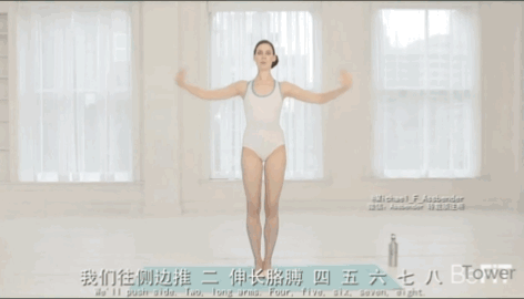 首先是天鹅臂经典动作,站直、沉肩、双臂向两侧张开,呈天鹅挥臂状小幅度上下挥动手臂,用小臂带动大臂。28个为一组,做3组。