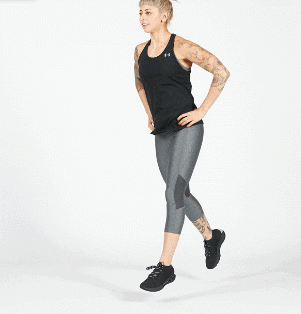 在弓箭步的基础上加入跳跃的动作,可以提升爆发力达到燃脂的效果。预备动作维持在弓箭步,接着跳起在空中换脚落下,落地时维持弓箭步姿势。