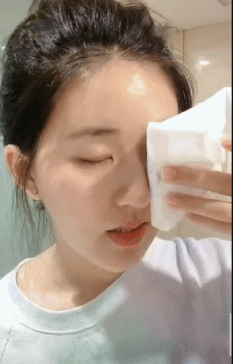 欣欣子早上会涂抹一些精华在脸上,涂抹的时候顺势由上至下带到脖子,也起到排毒的作用。像小时候做的眼保健操一样,不停地用力刮眼眶,直至精华吸收。