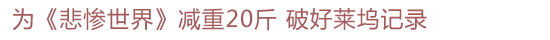 演员为了演戏忽胖忽瘦已经不是什么新鲜事儿了,但是好莱坞“大眼美女”安妮-海瑟薇为了出演《悲惨世界》却创下了一个纪录,减掉25磅(约20斤)体重,成为好莱坞为影片减重最多的演员。