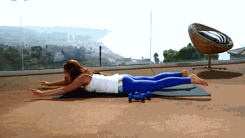 趴躺在瑜伽垫上,腹部紧贴地面,同时向上抬起手臂和双腿,注意的是通过背部和腹部发力而不是依靠腰部力量带起双臂和双腿,整套动作重复做40秒。