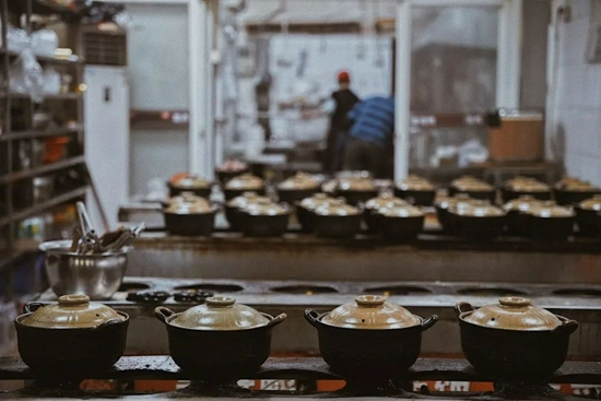 鸭剁成小块,跟秘制酱料和生姜一起放入砂锅里,经过长时间的焖煮,鸭肉会变得特别软烂,锅里的汤汁已收得粘稠,每一块肉里都吸足了酱汁的香。掀开锅盖的一瞬间,扑鼻的香气就已经让人欲罢不能了。