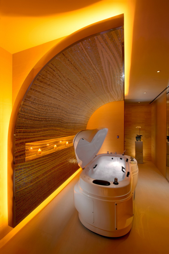舒适的按摩浴缸我告诉出租车大叔去国际金融中心那边的康莱德酒店,他说他知道那是一家新开的“高级”酒店。有多高级我不知道,倒是在车门被打开的瞬间为之一振,因为天气冷的关系门童已经穿上了皮草,他们看起来高贵又帅气,再走进酒店大堂一看更不得了,前台礼宾人员全部都长得像韩剧里的明星。可是转念一想,韩国医疗美容业发达,也就不足为奇。其中一位“明星脸”带领我进入房间,整个 check-in 的过程便捷顺利。在房门开启之后,玄关处的灯光以及卧室内的窗帘共同和着音乐缓缓开启,这种智能科技延续了之前大叔给我的“聪明”印象,整个房间像有灵性一样对我呈现出迎接的姿态。与此同时,电视机上还跳出了我的名字,虽然突然被吓一跳,但这个惊喜还挺欢乐的。通常出差如果行程紧张我连电视机都懒得开,再加上酒店的遥控器常常纷繁复杂,很多时候我情愿插上 iPod 听听音乐就好。不过,这次康莱德的服务员特地告诉我,他们酒店是韩国首家推出智能电视服务的酒店,也就是说所有电视机都安装了基于苹果技术的影音系统,可以和你的手机、平板电脑等智能设备相接,然后你就可以用电视来上网了。我试了一下,操作果然非常简单,适合各类技术白痴。
