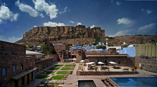 酒店占地 6070 平方米,包括原有的 3 栋 18 世纪古老建筑,主人两兄弟想把酒店打造成古城里唯一的精品奢侈酒店。整个酒店项目得益于兄长在旅游业方面的经验,也得益于弟弟在焦特布尔古城遗迹保护方面的知识和经验。