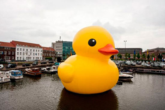 从诞生之日起,这只憨态可掬的大黄鸭就开始环球旅程这是一只 漫游世界的鸭子
