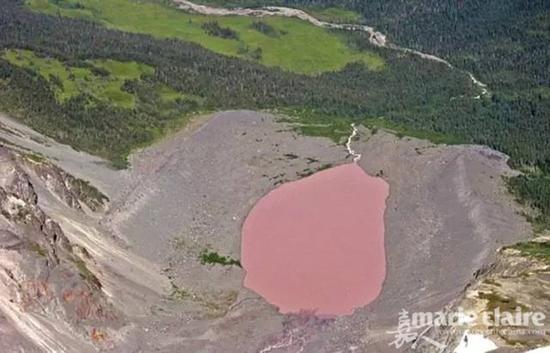 加拿大的玫瑰湖座落于不列颠哥伦比亚省,绚烂的颜色由冰川融水带来的颗粒所致。玫瑰湖四周的岩石呈紫色和粉红色,流入湖内的水呈薰衣草色。