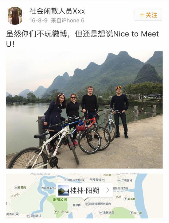 A:本来我做好了独行的准备,结果骑着骑着,在住的客栈结识了一群小伙伴,沿着漓江水的青山和古朴小镇一路欢歌笑语,现在回来了还会时常联系相约出去玩,想来是我这次骑行路上最大的收获了。