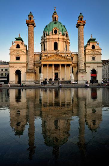 然而,如果你以为我会推荐你去维也纳金色大厅拍摄婚纱照那么你可就错了,其实与金色大厅相对而立的圣卡尔教堂才是值得前往的目的地。传统的欧式建筑风格自然不比多说,而教堂前面的一片水池才是令人喜爱的地方之一,黄昏的时候伴着水面的倒影这里格外的唯美。