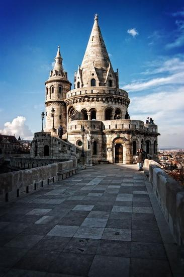 另外,你还可以前往渔人堡拍摄。跟伊丽莎白桥不同,渔人堡位于马提亚教堂里侧,是一座两层的白色建筑群,融合了新哥特、新罗马式以及匈牙利当地特色的建筑风格,极具传统欧式建筑风格。特别是尖顶的5个小圆塔和主塔尖之间以回廊链接,充满童话色彩。