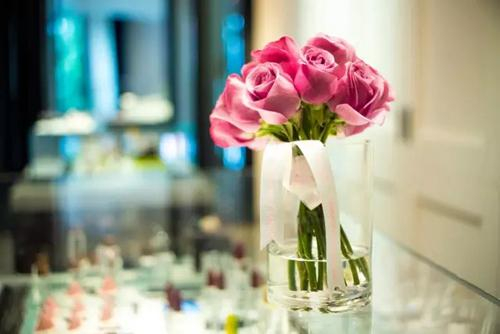 踏入深圳东海朗廷酒店,身着粉色套装的服务大使便会为每一位女性宾客奉上一株娇艳欲滴的朗廷品牌最具特色的粉红玫瑰。