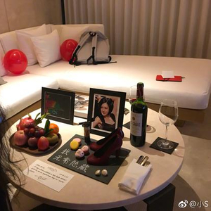 小S近日PO出一张入住酒店照片,直言“很貼心的歡迎,但擺設法怎麼感覺在跟我道別^_^ ” 。