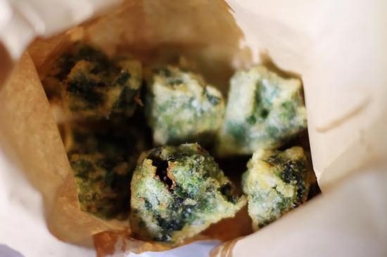 果然说的没错,第一口就能感受到满口的酥松外皮和绵软豆香,而且里面加了虾米、香菇,有“山珍海味”的加持,鲜味升华。居然连这种搭配也能想到,简直秒杀很多炸物。