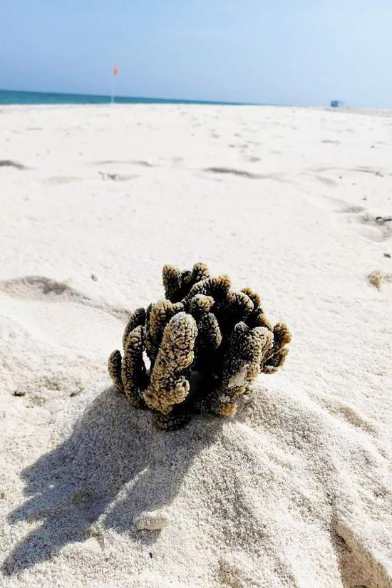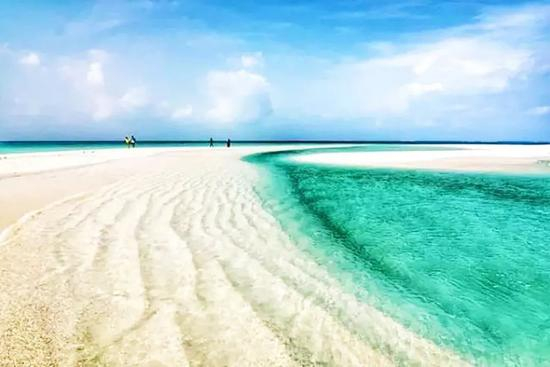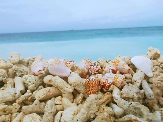 这里有中国最细腻无人的白沙滩脚踩着细白的沙子,蓝色透明的海水从白色的沙滩上略过,沙滩上躺满各种形状的贝壳。