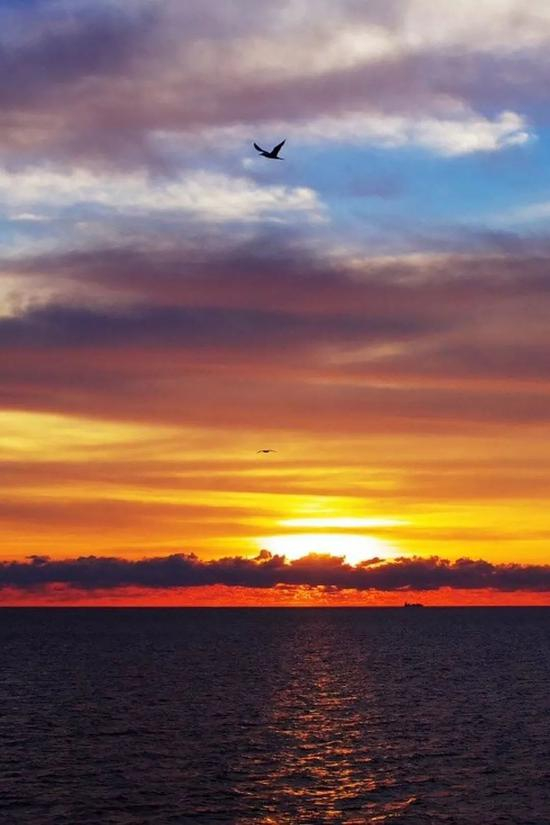 在天快亮的时候甲板上已经有影影绰绰的人影在等待海上的日出大家窃窃私语着仿佛不忍心打破海上清晨的这份静谧