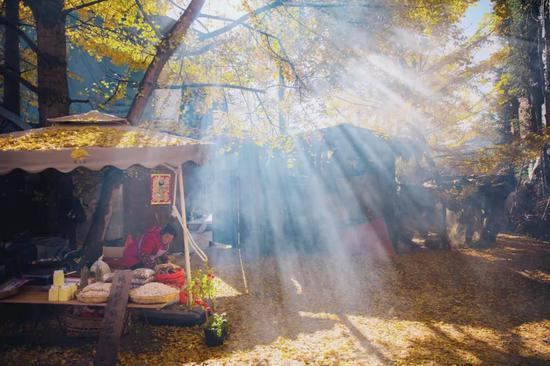 家家户户的炊烟开始升起,袅袅娜娜,村子渐渐变得灵动鲜活。最让人怦然心动的,不是彩林尽染,而是透过光影的人间烟火,给人踏实的幸福感。