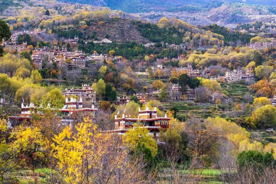 秋天毫不吝啬地用最艳丽的彩笔,将小村描绘成一幅色彩绚丽的实景油画。