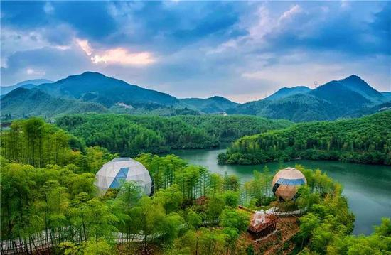 在湖州的安吉县,一个安静的小村里,山水之间,两颗小星球如同天外来客降临,却又与眼前这片环境相得益彰。