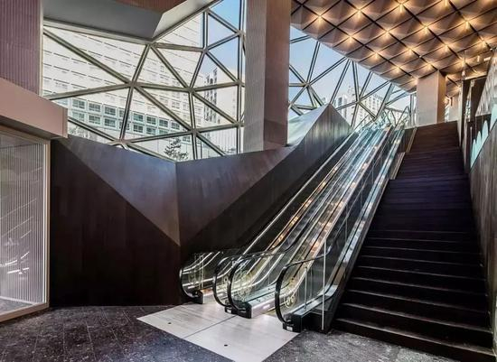 流线型的玻璃幕墙减弱了石材的坚硬感,渐落的空间布局活泼又灵动。