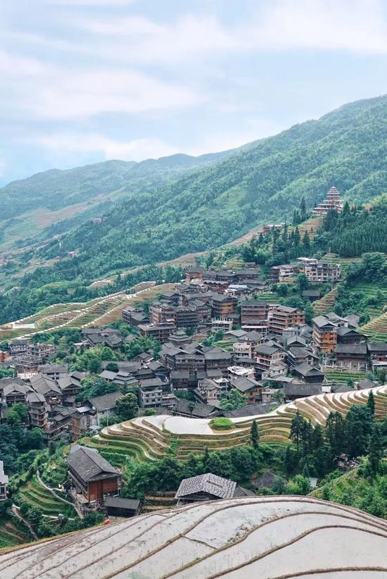 龙脊梯田可以说是上帝在桂林划画出的优美曲线。从山脚盘绕到山顶,小山如螺,大山似塔,层层叠叠,高低错落。梯田春夏看绿色,秋天看黄色,碰上天气好的时候,日落斜阳下的梯田犹如遍地黄金,烟雾缭绕的猫儿山仿佛一片人间仙境。