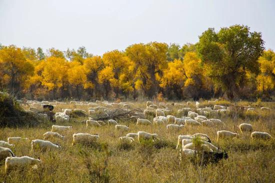 秋风刮过,胡杨林沙沙作响,金海荡起波浪,此时的轮台正美得嚣张。