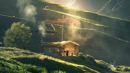 清晨薄雾弥漫,要不是没过一会屋子上空飘出的袅袅炊烟,你大概很难相信这样的地方真的有人居住。