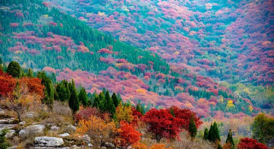 许多济南本地人,一年必来两次九如山,一是春天,来赏花、听瀑,一则是秋天,为这满山遍野的彩色童话而来。