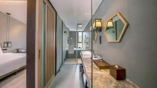 酒店设计师是G20峰会空间主设计师之一,全透明玻璃墙设计,让庐境打破了室内外空间边界。