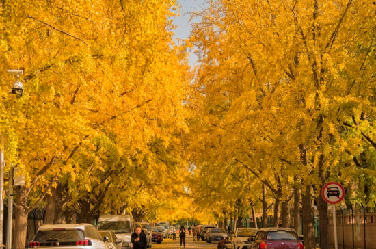 东五街位于使馆区,街道不算长,只有三百米左右,两侧全是风情各异的各国使馆建筑。而两排整整齐齐的银杏树就矗立在这样的路边。