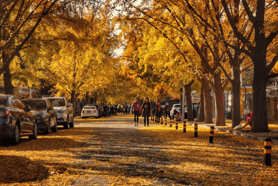 秋天最吸引人的还是街上种着的白蜡和银杏,阳光穿过金灿灿的叶子,又在街上的人家投出一片秋日的暖洋洋。