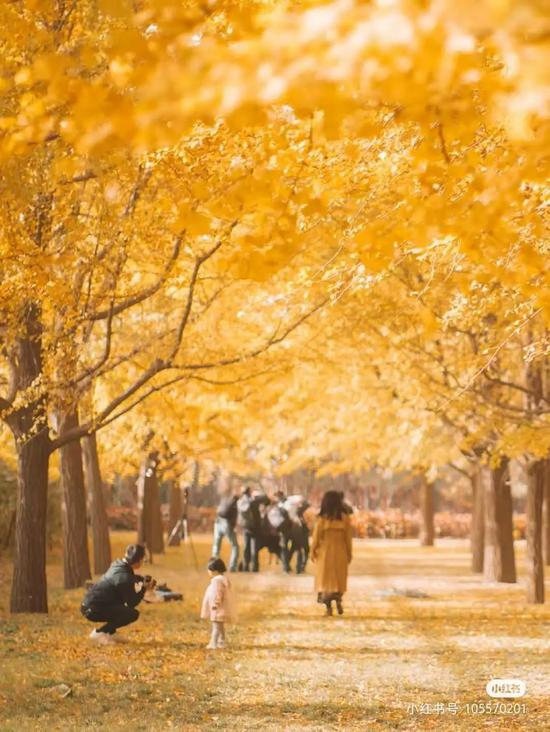 玩累了随便找棵银杏树坐下休息,就能安心享受树叶碎隙间秋日的阳光。