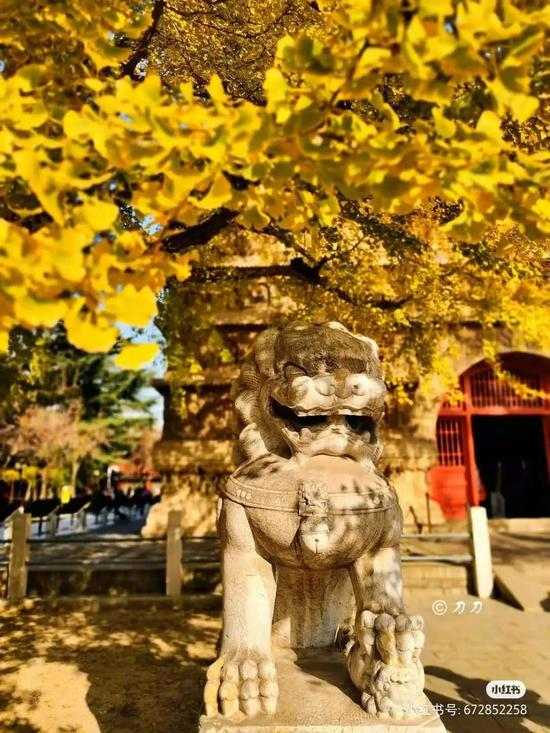 深秋的时候,寺里据说已有600余年树龄的银杏已经一片熟黄,映衬着沧桑的石塔,古朴的石狮,为整个寺庙又镀上一层沉静的意味。