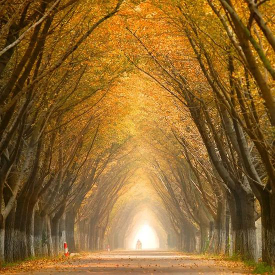 话不多说!直接上图感受下这条“银杏时光隧道”,绵延七八公里的银杏林,简直就像穿越童话世界。