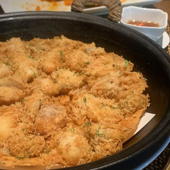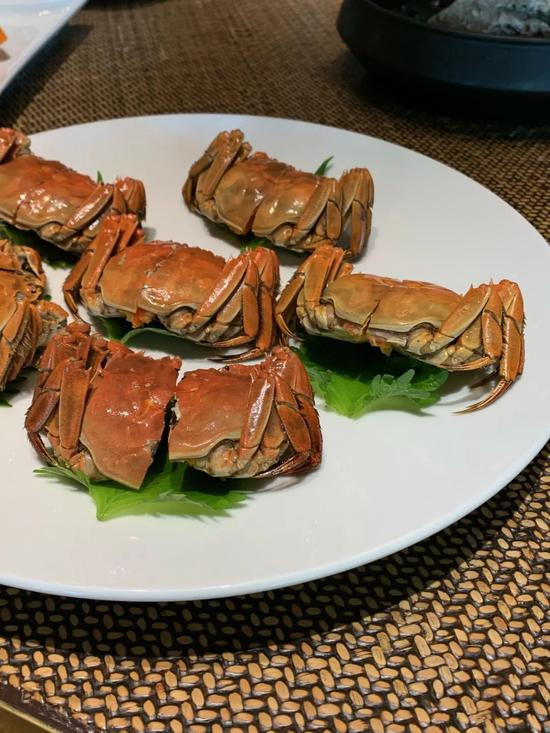 秋天当然少不了大闸蟹。花雕酒醉蟹的做法,每一只都膏黄饱满,齿颊留香。家烧小黄鱼也是新荣记的招牌,口感鲜嫩,味道很好。此外还有沙蒜豆面、黄金脆带鱼都是必点的菜式。