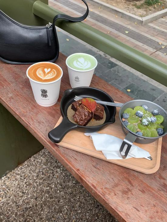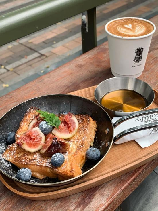 虽然制作时间有点长,但当我们的餐点上桌时,精致感却是让人惊喜~而且像是法式吐司、黑巧小方砖、水果燕麦碗的味道都非常不错。咖啡也值得一试哦,不少都是用梅里等地名命名,颇具创意。