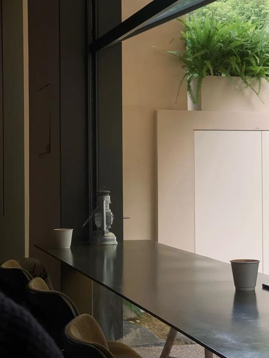 cafe外的小院子里摆放的都是露营用的折叠桌椅,被绿植包围着,就很有氛围感。