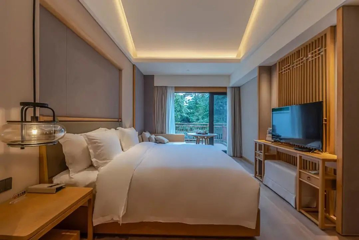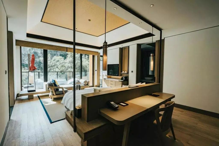 宁海安岚处于宁海县的国家级森林公园之中,集竹海、温泉、山谷于一体。房间带有落地窗与阳台,可一览室外美景。