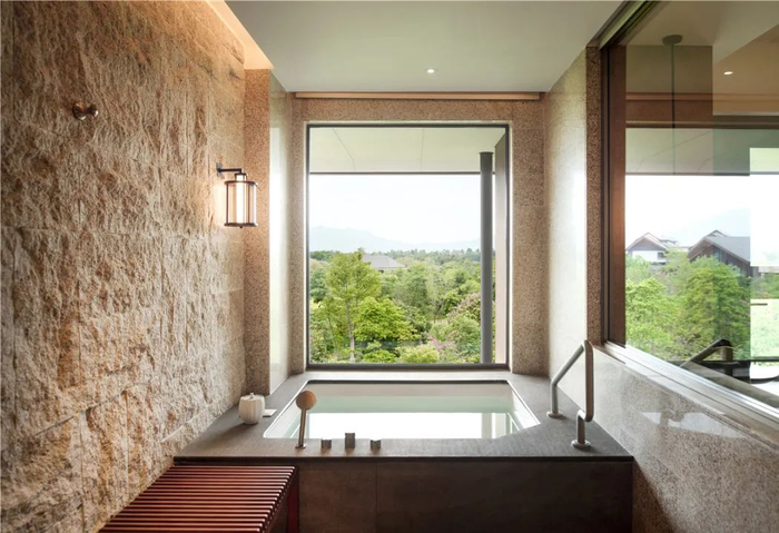 酒店共有217间豪华客房与套,面积55平米起跳,现代日式轻奢风设计,沙发躺椅、嵌入式浴缸的细节让人仿佛置身于日本。
