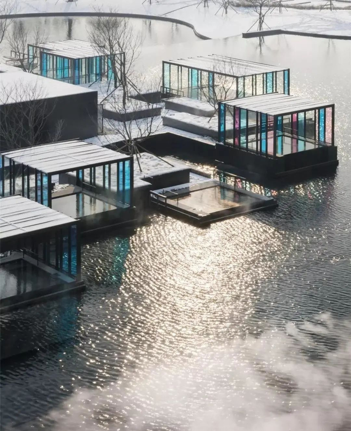 每个小房子都是一个独立的泡汤区,泡汤时四周水域会升腾烟雾,可以让你更安心享受。