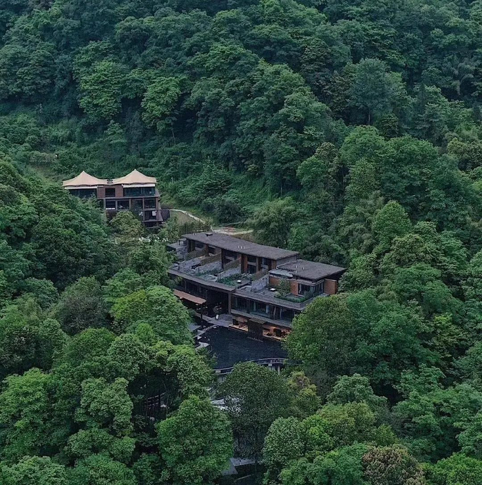 重庆北碚悦榕庄是悦榕庄首个天然温泉酒店,位于重庆缙云山自然保护区脚下的山坡上,群山环抱,为天然氧吧。